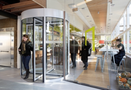 All right, I'll admit it. The fact that the Netherlands-based revolving-door manufacturer Boon Edam has a model that uses human power to generate electricity is mostly a gimmick. By entering or leaving through the NRG+ Tourniket, a generator built into the revolving door mechanism powers three LED spotlights in the ceiling of the door.