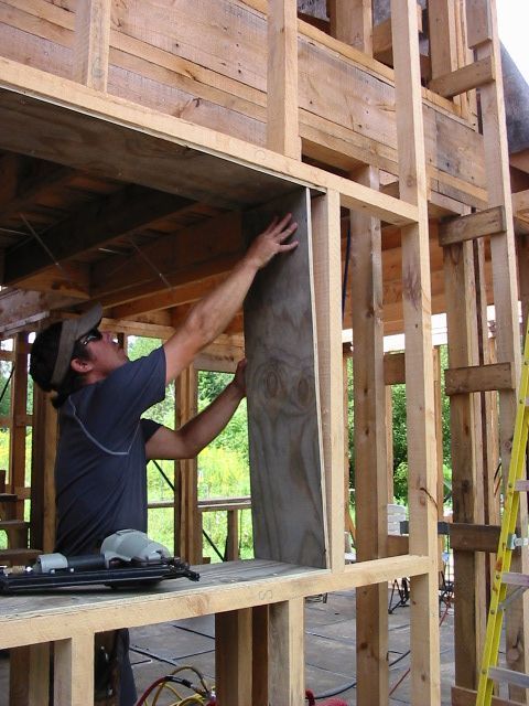 Local, minimally-processed lumber is the "skeleton", the "skins" are wooden boards and gypsum, the "fat" is recycled newsprint with boric acid (fire retardant, mold resistant, insect-proof, vermin-resistant, air-resistant, and sound-proof), and the "meat" is the thermal mass. Together, and composed primarily of nature's gifts, these create an organic integument that meets both the requirements of a good building envelope and the demands of a finite planet.