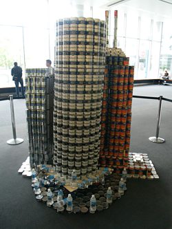 A foundation of the Society for Design Administration (SDA), Canstruction is a design/build competition currently held in cities throughout North America. Teams of architects, engineers, and students mentored by these professionals, compete to design and build giant structures made entirely from full cans of food. The results are displayed to the public as magnificent sculpture exhibits in each city where a competition is held. At the close of the exhibitions all of the canned food used in the structures is donated to local food banks for distribution to emergency feeding programs that include pantries, soup kitchens, elderly and day care centers. Since its inception, ten million pounds of food has been donated to aid in the fight against hunger. Initiated by the Denver, Seattle and New York Chapters of the SDA in 1992/93, Canstruction now has over one hundred individual competitions scheduled to take place during the 2007-2008 cycle. Design and Construction Industry professional associations that have partnered with the SDA in organizing local competitions include the American Institute of Architects, the Society for Marketing Professional Services and the International Interior Design Association.Check out the stunning photo/video archive.