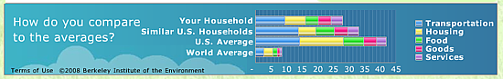 - Low Impact Living's Environmental Impact Calculator, which provides a comparative assessment of a range of impacts, not just carbon emissions; suggests actions; and lets users save and update their profiles. (In contrast, the Ecological Footprint Calculator has an animated custom avatar, but I'm not convinced it provides much life-changing value.)