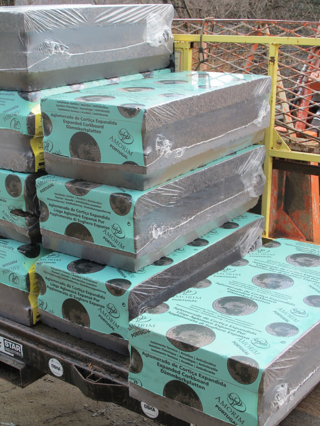 Next week I’ll provide some specifics on how the cork insulation is being installed. Eli Gould and his crew have done a wonderful job at figuring out how to work with the stuff—some of the details are quite tricky.