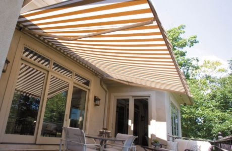 The main advantage of awnings is that they block the light before it comes through the window, preventing glare, heat gain, and damage from UV-rays, while fully maintaining the view to the exterior. Keeping direct sunlight off your windows keeps solar heat gain out--which is a more effective strategy than trying to keep the solar heat after it has hit or entered the window. For times when you want the sun's heat, retractable awnings are available.
