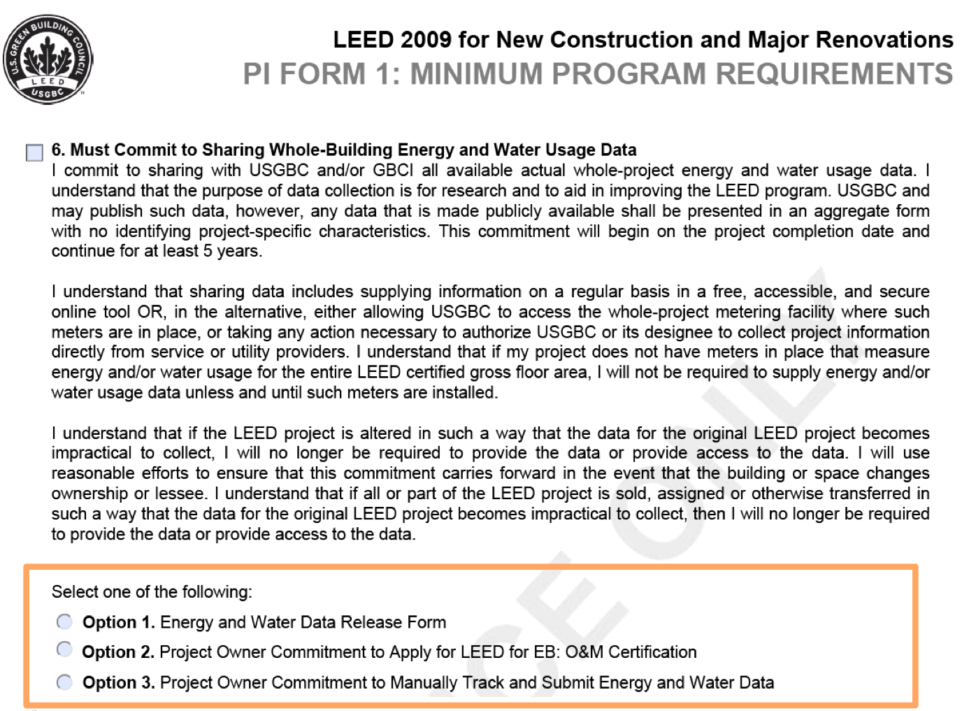 - The three options for BD&C projects to comply with MPR #6, including through use of Energy Star or LEED-EBOM