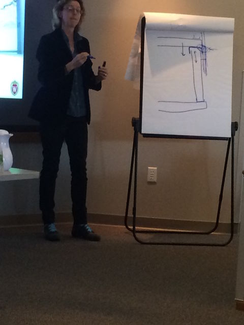 Building enclosure commissioning instructor Fiona Aldous whips up a quick sketch to demonstrate a key enclosure detail on one of her case studies. Fiona’s hand-drawn 3-D isometric details in the course materials were works of art.
