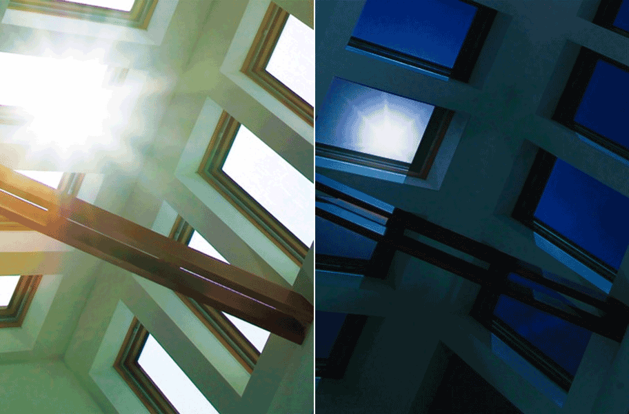 Clear in its normal state, when the RavenBrick coating is heated up it darkens to allow only 8% light transmission. The idea is that during a hot sunny day, the glass will heat up and activate the thermochromic material, blocking most of the sunlight, while on a cooler or cloudy day, the glass will remain clear. A big advantage is that it doesn't take any electricity to activate or maintain the tinting, as is necessary with SageGlass, but the down side is that it isn't controllable by building occupants.