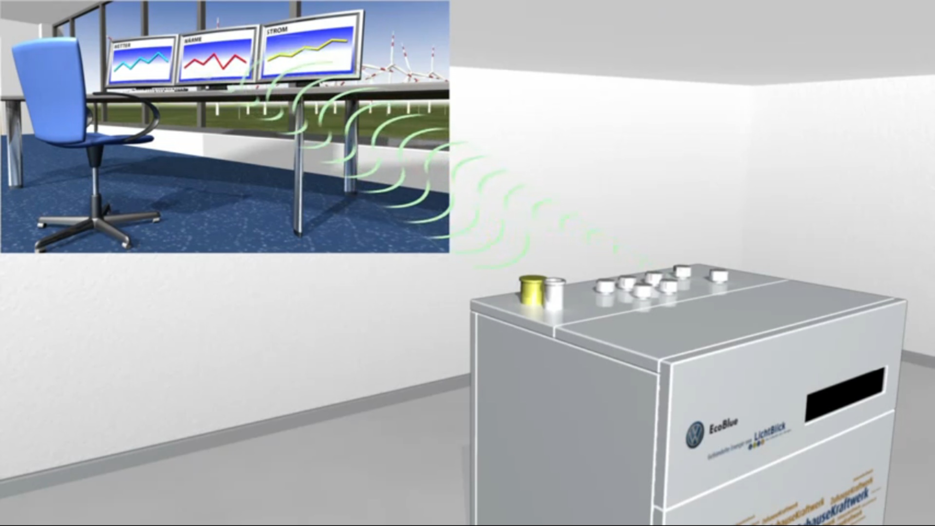EcoBlue natural-gas-powered combined heat and power (CHP) cogeneration plants were developed through a partnership between Volkswagen and LichtBlick, and are produced by Volkswagen exclusively for LichtBlick. LichtBlick installs the units in homes, where they provide 100% of heat and hot water while supplying power to the grid. LichtBlick maintains ownership of the system, takes care of all of the maintenance, and controls each unit's operation wirelessly from a central location.