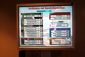 At the main entrance of the Sandvik Plant one sees this monitor showing real-time conditions and output of the plant.