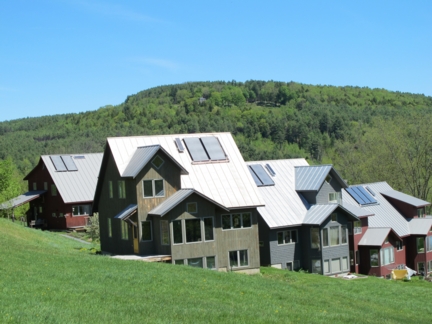 This summer is a great time to get a good deal on a solar water heating or solar-electric (photovoltaic) system for your home. While I argued a few months ago in this column that the 30% federal solar tax credit has some flaws--key among them being that it's based on the dollar value rather than performance and that there's no cap on the cost of the system (and credit you can earn)--these aren't reasons not to take advantage of it. While the solar tax credits are scheduled to be in place until 2016, I won't be at all surprised to see them scaled back or eliminated well before then. If you haven't noticed, the political pendulum is swinging, and incumbents who supported the stimulus funding are now being cast as reckless spenders and are losing primaries. I think we'll see a growing focus on deficit control--and that could well include scaling back on incentives like the solar tax credits. The bottom line is that now's the time to benefit from the solar tax credit. For most homeowners, installing a solar water heating system will have a more rapid return on investment (ROI) than installing an electricity-generating photovoltaic (PV) system, so I'll focus on the former. Most solar water heating systems for typical homes have two flat-plate solar collectors. Either water or an antifreeze solution is pumped through the collectors during the day and heat is transferred from the absorber plate to that fluid. A glass cover plate on the collector, insulation behind the absorber plate, and pipe insulation all help to improve efficiency and direct more heat into the circulating fluid. While the collectors sit on your roof (or on a separate rack outside the house), there are also solar water heating components inside the house. Most systems have a separate solar hot water storage tank in the basement or utility room that serves as a preheater for the standard water heater. A heat exchanger in this tank transfers heat from the fluid circulating through the collectors into the storage tank. Rather than a preheater tank, some systems have a single tank containing both the heat exchanger from the solar collectors and a standard heating element. Controls and a pump round out the system. The conventional approach is to have a differential thermostat that senses temperatures both in the collectors and storage tank, and then switches on the circulator pump when the collectors are warmer than the water in the storage tank. Some systems, however, now use a simpler control system: a separate PV module powers the circulating pump, operating only when the sun is shining. Solar water heating systems vary a great deal in their cost, depending on the size, type of system, added features like digital monitoring, and challenges of the installation. The typical price range for a residential system is $5,000 to $8,000, installed. With new construction, costs can be lower, especially if a lot of identical systems are being installed on multiple tract homes. To function efficiently, solar panels must be installed on a good site. The sun traverses the southern sky during the day, rising in the east and setting in the west, so the best site for solar is a south-facing roof. The pitch of the roof isn't critical. A steeper pitch will be a little better in the winter (when the sun is lower in the sky), while a shallower pitch is better in the summer (when the sun is higher in the sky), but most standard roof pitches will work all right. There should be as few obstructions as possible, so cutting or pruning nearby trees is often an important part of a solar installation. A properly sized and well-sited solar water heating system should satisfy most of your hot water needs during the summer months, but it may provide less than half in the winter, when there is less sunlight. To maximize the percent of hot water provided by the solar system, you should carry out appropriate water conservation efforts, such as installing low-flow showerheads and washing laundry in cold water. Contact a local or regional solar installer for more information and to schedule a site visit. Be sure the contractor you pick is more interested in a quality, reasonably priced installation than on maximizing the tax credit. (Be aware of scams in which roofing or other costs unrelated to the solar system are added into the installation price so that Uncle Sam will pay you more--an indicator that the contractor's motivations are misplaced.) I invite you to share comments on this blog. Alex Wilson is the executive editor of Environmental Building News and founder of BuildingGreen, LLC. To keep up with his latest articles and musings, you can sign up for his Twitter feeds. Photos: Solar water heating systems at Cobb Hill CoHousing in Hartland, Vermont. Small PV modules provide power for the circulators as well as control (the pumps operate when the sun is shining). Credit: Alex Wilson