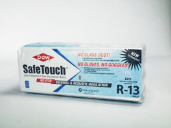 Dow Chemical launched SafeTouch in a few select markets in 2007, but expanded availability late last year to 53 market areas, mostly in the Northeast and Mid-Atlantic states and exclusively through Lowes stores. You can find stores carrying the product using this locator. SafeTouch is a batt insulation material made from 100% polyester fiber. The material contains no fiberglass, so there are no respirable glass or mineral fibers to cause itchy skin, red eyes or respiratory problems--so there's no need for a dust mask, gloves, or goggles. It has no formaldehyde binder to hold the fibers together; there's not even an acrylic binder. And the product apparently requires no flame retardant, which is added to cotton insulation and virtually all other plastic insulation materials (see more below on fire-resistance properties).
