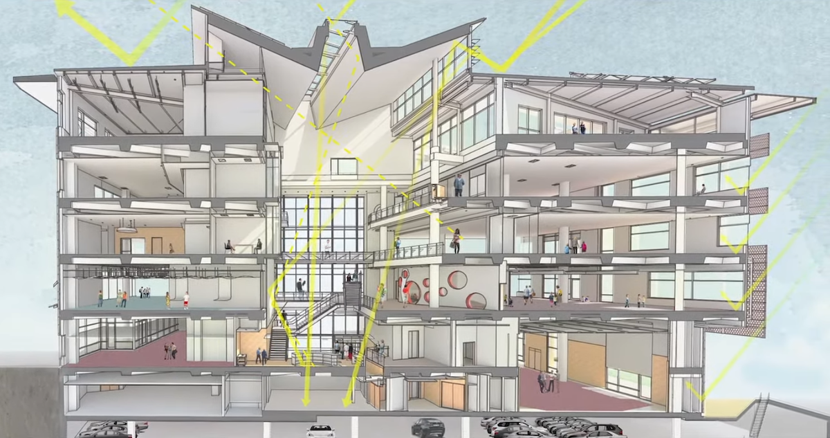 BuroHappold Engineering The Santa Monica City Services Building can be “toured” through a two-hour video. There’s also an eight-minute option. Utilizing natural ventilation, radiant cooling, and phase-change materials to reduce energy use, the project is pursuing full Living Building Challenge certification and could be the first municipal building in the world to achieve it.