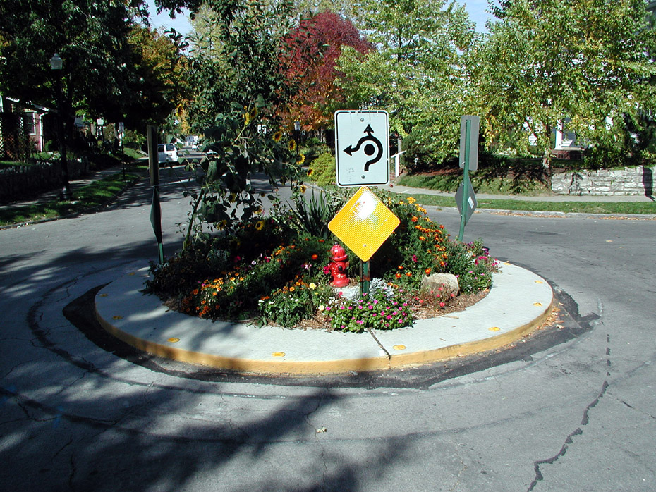 Replace stop signs with mini-circles With mini-circles instead of stop signs, cars don't have to stop and start as often, and drivers tend to accelerate less between those intersections. Vehicles move more efficiently and save gas. Because drivers don't see a long straight-away, but instead see a bit of greenery at every intersection, they drive at a more relaxed pace, but by not having to stop at intersections, they get where they're going just as fast. Seattle has installed more than 1,000 mini traffic circles (typically 15-20 feet in diameter) over the past several decades, and neighborhoods take pride in landscaping their local circles; the city even has competitions for the most attractive circles. A study in Seattle found a remarkable 94% reduction in accidents at intersections with mini traffic circles.Beautify streetscapesMore attractive streets with trees, benches, public art, and other amenities encourage drivers to slow down. When all you see from the car is asphalt and parking lots, the tendency is to speed up. Beautification may seem like an unnecessary expense for a town or city, but it can pay off with greater pedestrian safety. Beautification programs can be public-private partnerships to get more bang for the buck from tax dollars.