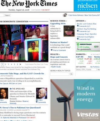 A wind turbine ad on the New York Times homepage! Sure, Web ads are relatively cheap, but it still looks like a sign that alternative energy is hitting the big time.