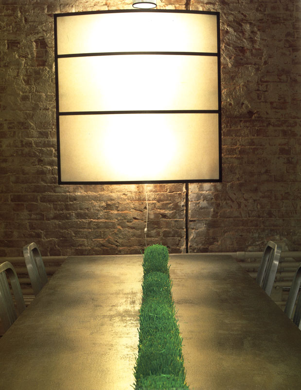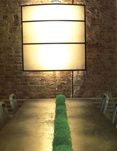 This custom concrete conference table by Clodagh Design in New York City features a C-channel groove planted with wheatgrass.