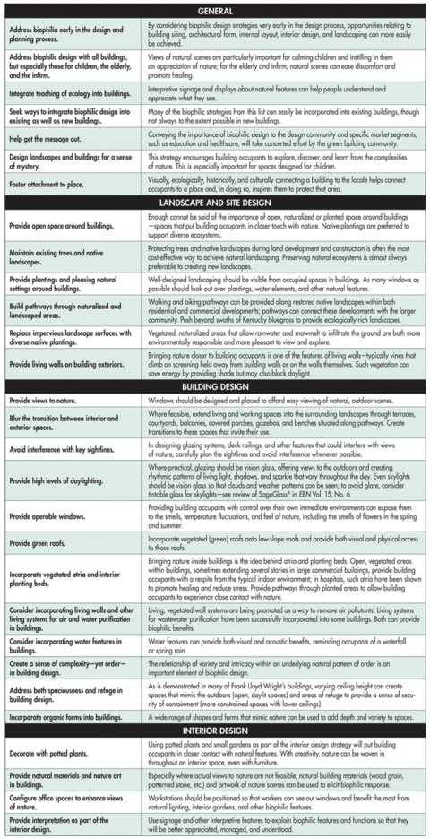 Special thanks to Jenifer Seal Cramer and Benjamin Shepherd for input on the Biophilic Design Strategies table.