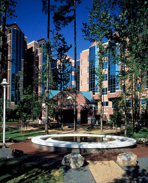 At the Christus St. Michael Health Care Center in Texarkana, Texas, designed by WHR Architects, Inc. of Houston, nearly every hospital room looks out on trees or other natural landscaping elements.
