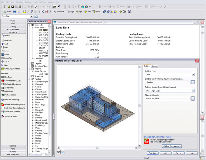 This screen capture from Revit MEP shows the heating and cooling load calculator from IES Virtual Environment running within the Revit application.