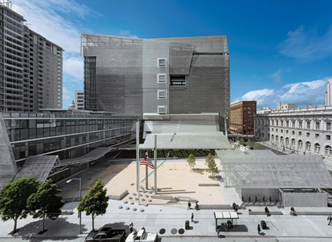 GSA’s new San Francisco Federal Building (SFFB) was designed by Thom Mayne, FAIA, principal of Santa Monica, California-based Morphosis, and the Los Angeles office of the international engineering firm Arup, which provided seismic, structural, mechanical, electrical, and plumbing services. GSA intended the 18-story, 605,000-square-foot SFFB to be a model of sustainable design. Many of the building’s features will be precedent-setting for GSA. A narrow footprint ensures employees will have access to daylight. Skip-stop elevators are meant to encourage walking and social interaction. The building features extensive use of natural ventilation for cooling, thermal mass storage, and both passive and active shading strategies.