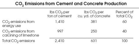 2 per ton of cement, according to researchers at Oak Ridge National Laboratory. Combining these two sources, for every ton of cement produced, 1.25 tons of CO