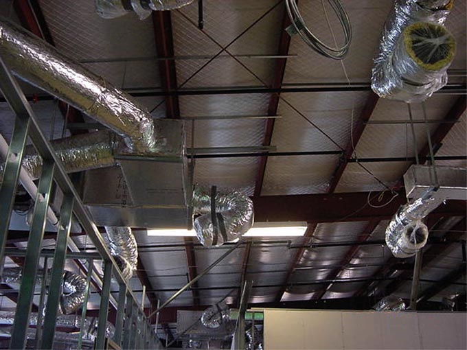 To prevent entry of dust and other contaminants, all HVAC ducts are wrapped with plastic while construction is under way on the Cottonwood Administration Building owned by Intergen.