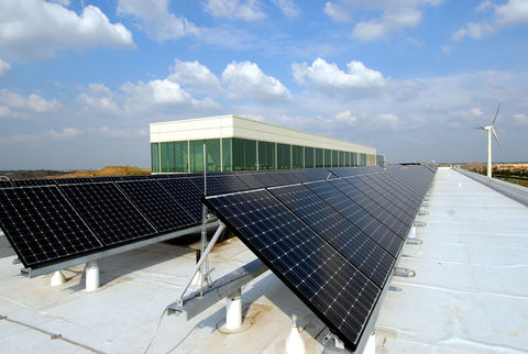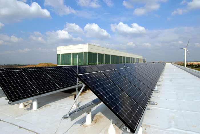 Provide site-generated electricity from renewable energy. Incorporate photovoltaic panels into buildings or link buildings with other nearby renewable energy sources such as stand-alone wind turbines or small hydropower facilities.