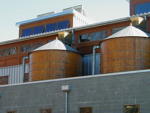 The cisterns on the Chesapeake Bay Foundation headquarters in Annapolis, Maryland, are positioned high enough to allow gravity distribution.