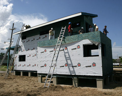 The homes built by Global Green in the Lower Ninth Ward of New Orleans are elevated to keep them above expected flood level. Numerous other “passive survivability” features are included.