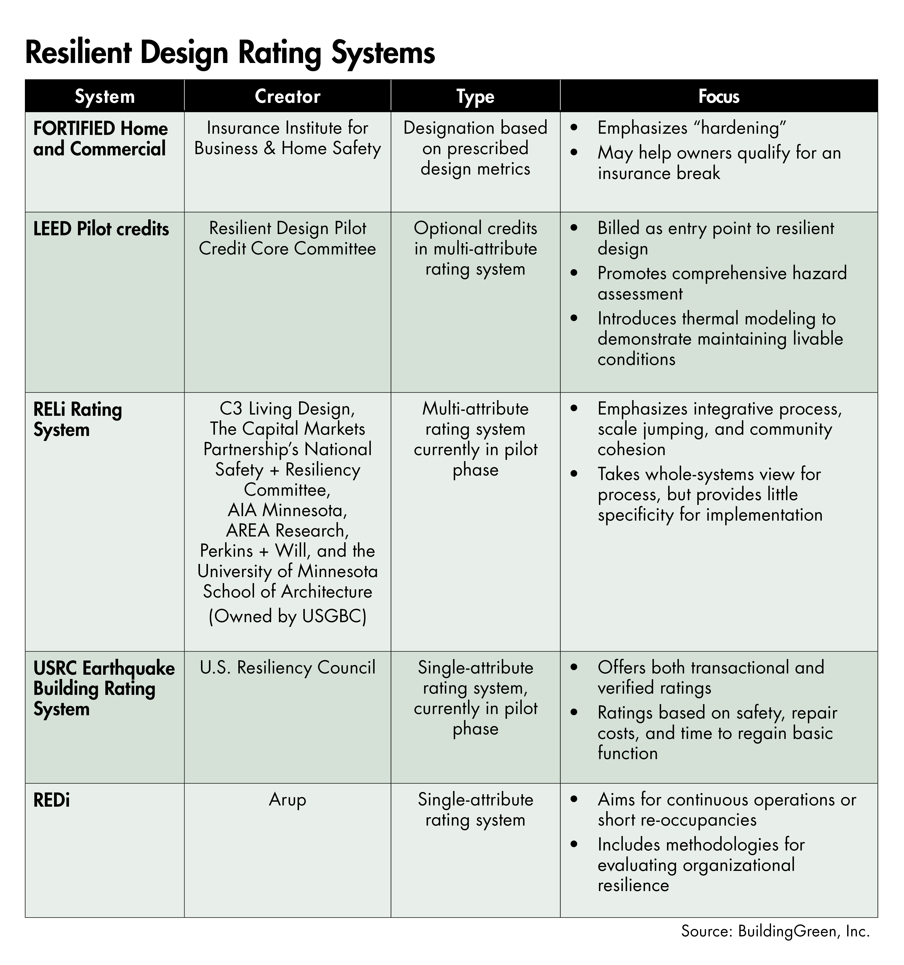 As rating systems from LEED to RELi lay out key design steps for resilient design, it’s still up to project teams to bring critical perspective.