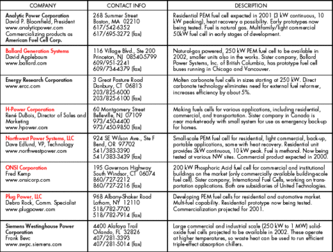 Table 2. Companies Developing Fuel Cells for Building Applications