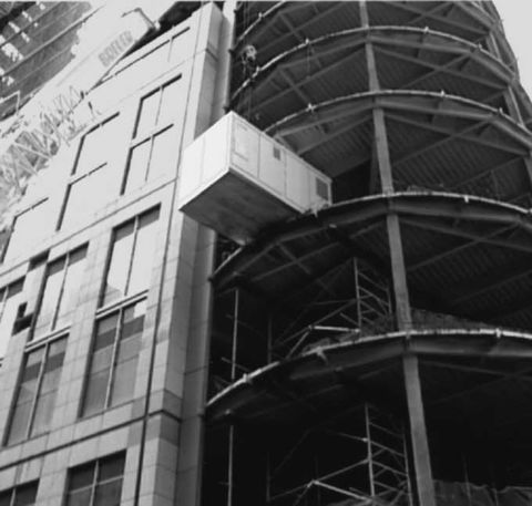 One of two 200 kW fuel cells on its way to the fourth floor of Four Times Square in New York City.