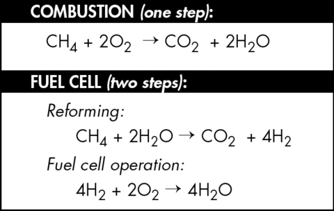 A cubic foot of natural gas powering a fuel cell releases just as much global-warming-inducing CO2 (during the reforming stage) as a unit of natural gas burned to operate a gas turbine. And a gallon of gasoline releases just as much CO2 whether used in a fuel processor/fuel cell, or burned in an internal combustion engine. However, because the overall efficiency of power conversion is higher with a fuel cell typically than with direct combustion, less CO2 is emitted per kilowatt-hour of electricity or produced per mile traveled.
