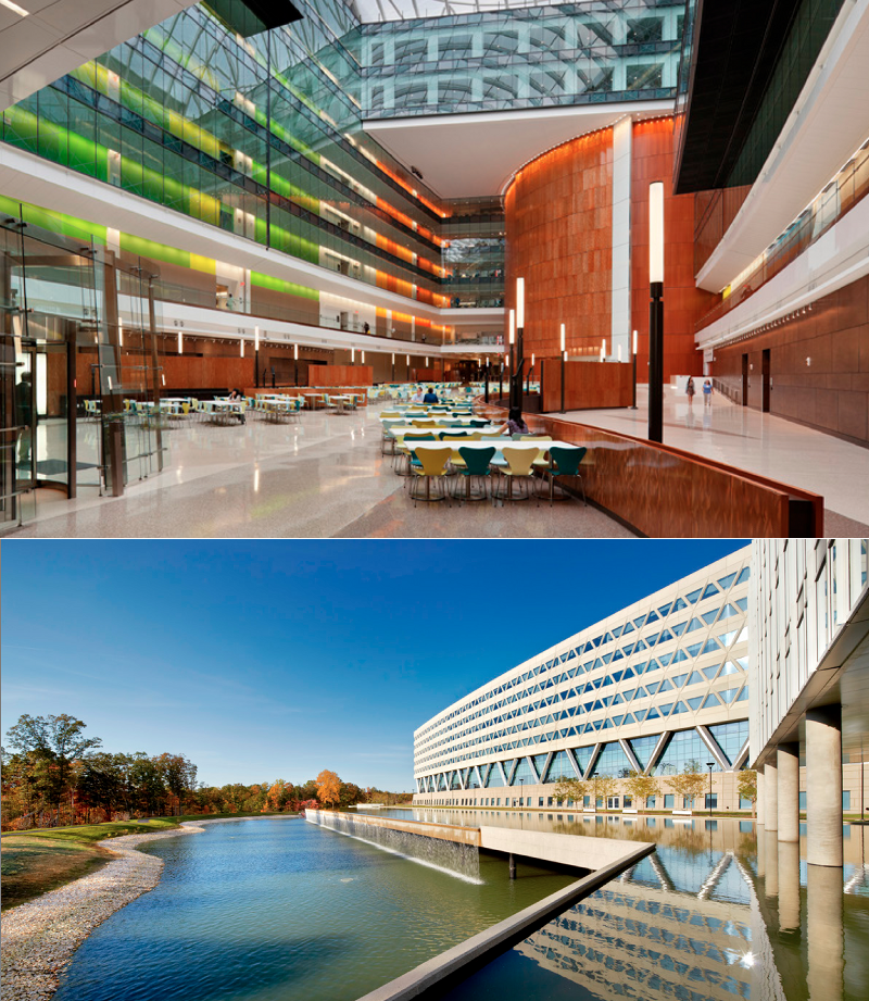 RTKL helped save $300 million over the original budget for the largest federal LEED Gold building to date, the National Geospatial-Intelligence Agency headquarters. A closely integrated design and delivery process was largely responsible, including a two-tiered retention basin that captures 100% of rainwater onsite and uses it for irrigation and for cooling, while also satisfying the agency’s security needs by keeping vehicles away from the building.