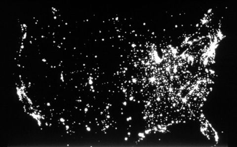 Light pollution is clearly evident in this composite nighttime satellite photo of the United States (1978).