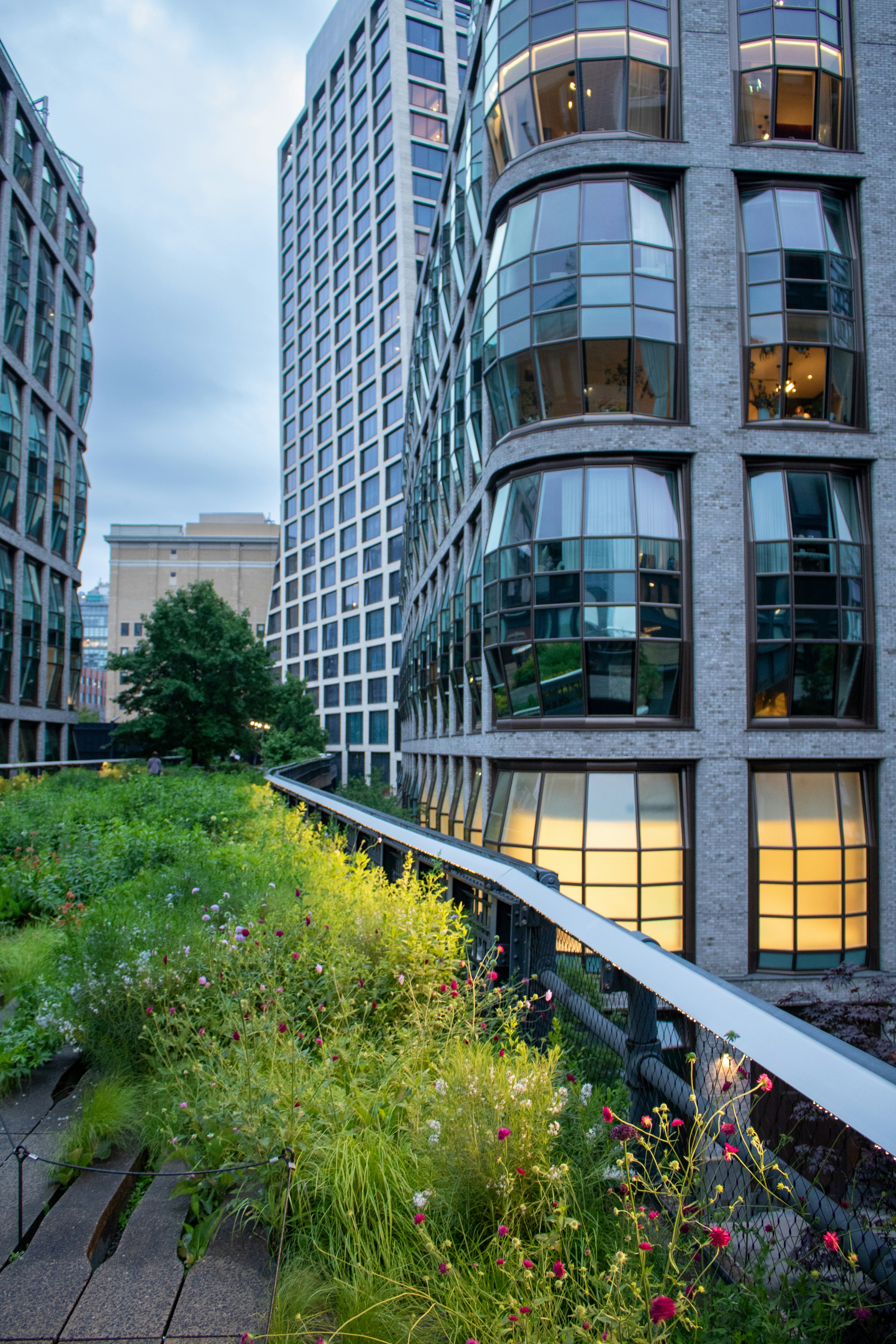 The High Line in New York City supports native plants and encourages people to interact with nature and the built environment.