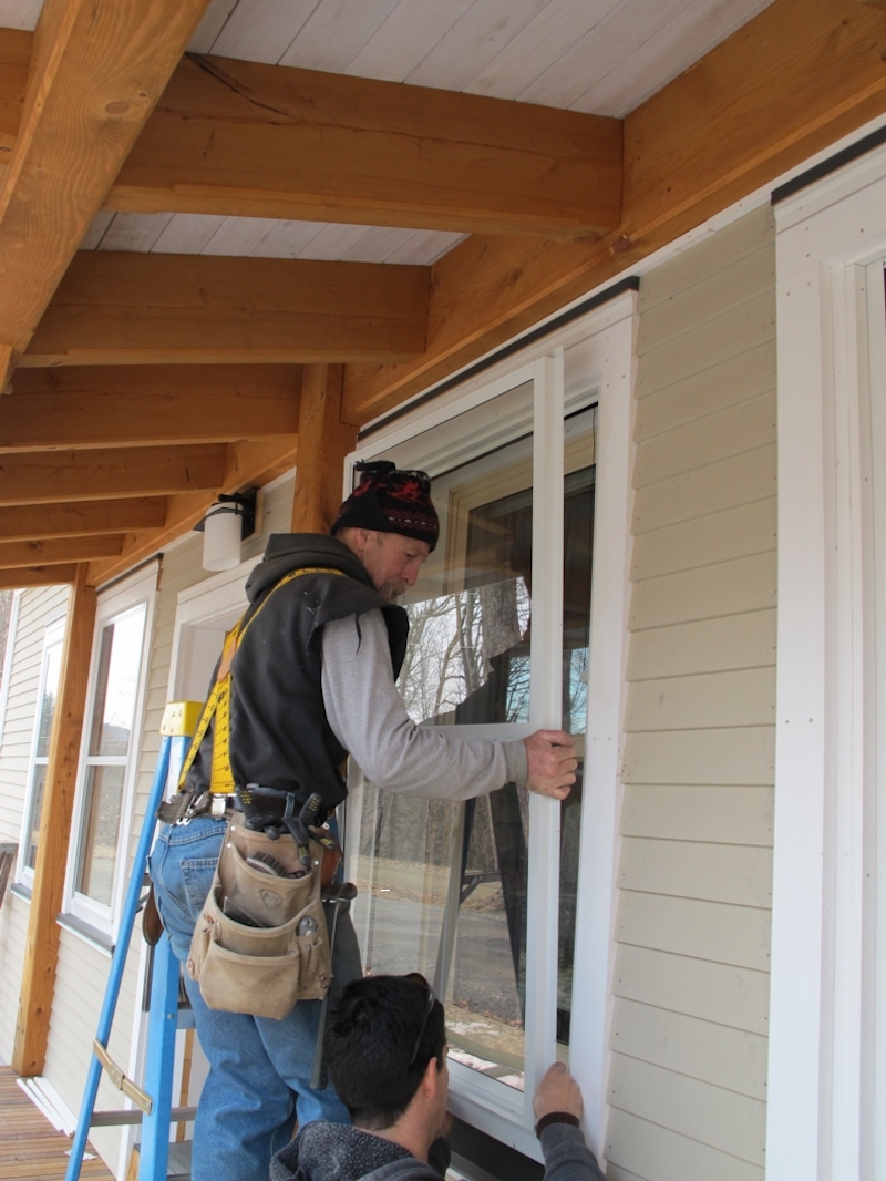 Installers apply exterior storm windows. The prime windows which are double-glazed, low-e, argon windows, result in triple-glazing with two low-e coatings. This can be a good strategy for deep-energy retrofits.