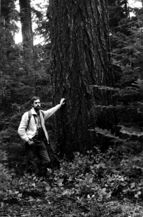 Alex Wilson supporting a Douglas fir in the Siuslaw National Forest in Oregon.
