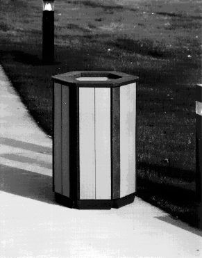 Trash container from The Plastic Lumber Company of Akron, Ohio