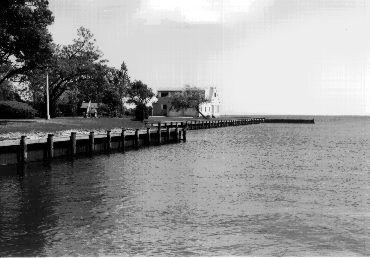 Seawall in Brightwaters, New York, made of wooden piers and Trimax lumber