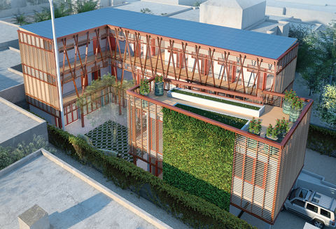 HOK's design for Project Haiti, an orphanage built by the U.S. Green Building Council in the wake of the devastating 2010 earthquake there, uses resilient design elements—like a structural system made robust by branching elements inspired by nature, as well as rainwater catchment and onsite renewable energy.