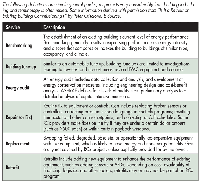Energy Services and the Retrocommissioning Scope