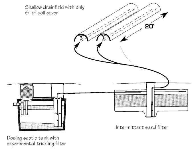 Along with pioneering work with intermittent sand filters, Orenco has been testing a trickling filter that is integrated with the septic tank.