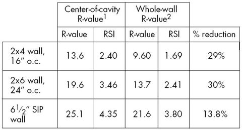 Table 1. Comparing Center-of-cavity and Whole-wall R-values for Three Wall Systems