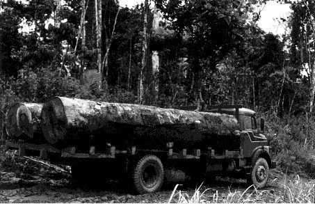 Mahogany logs leaving the Amazon forest in Brazil