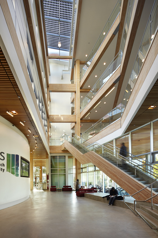 The project team for the CIRS building chose a 100% heavy timber structure in pursuit of negative embodied carbon. That target required life-cycle assessment throughout design.