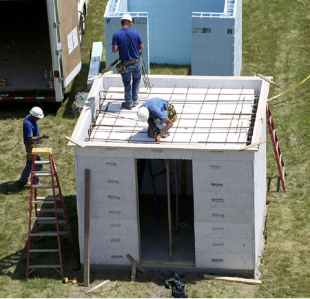 Getting ready to pour a concrete ceiling on a modular safe room in Sioux City, Iowa. Photo: Dave Gatley, FEMA. Click on image to enlarge.