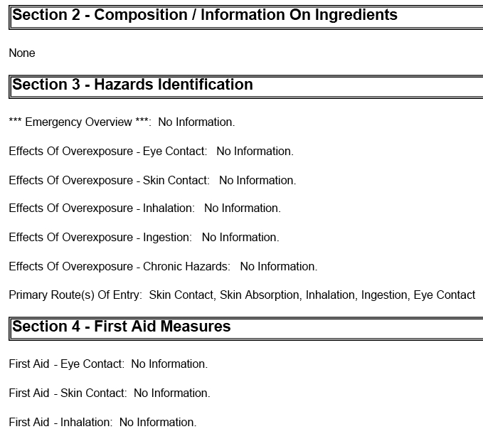 Looking for better information on chemicals of concern? An MSDS can be a good place to look. Then again, it can be a really bad place to look. Click for a PDF of the full non-information. (We took out the company name; they DID include that much!)