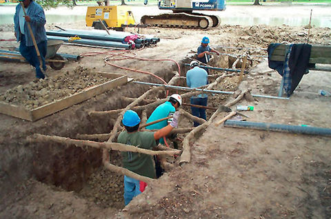 All excavation around existing trees in Houston’s Hermann Park was performed by hand to protect the delicate roots.