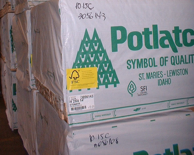 FSC-Certified Framing Lumber, Plywood, and Cedar from Potlatch Corporation. Potlatch produces chain-of-custody FSC-certified Hem-Fir and Douglas Fir-Larch framing lumber, inland red cedar decking and siding, and Douglas fir and white fir plywood from three mills in Idaho. Potlatch is the first publicly traded U.S. timber company to certify timberland according to FSC standards. Their land is also SFI-certified. (See