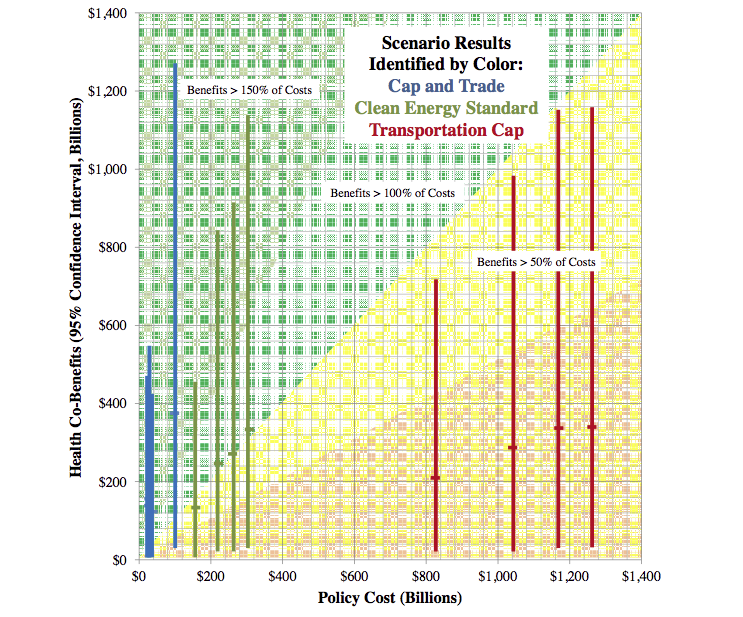An MIT study, published in the journal Nature Climate Change, reviewed three types of policies that would achieve the same emissions reductions nationally: a transportation policy, a cap-and-trade program, and a clean-energy standard similar to the Clean Power Plan proposed by President Obama in June 2014. Researchers found avoided health costs would recoup only a quarter of the massive $1 trillion transportation policy but would completely cover the costs of the other two policies with room to spare. The cap-and-trade program would cost a tenth of the money it would save, and the clean-energy standard would save a net $39 billion.