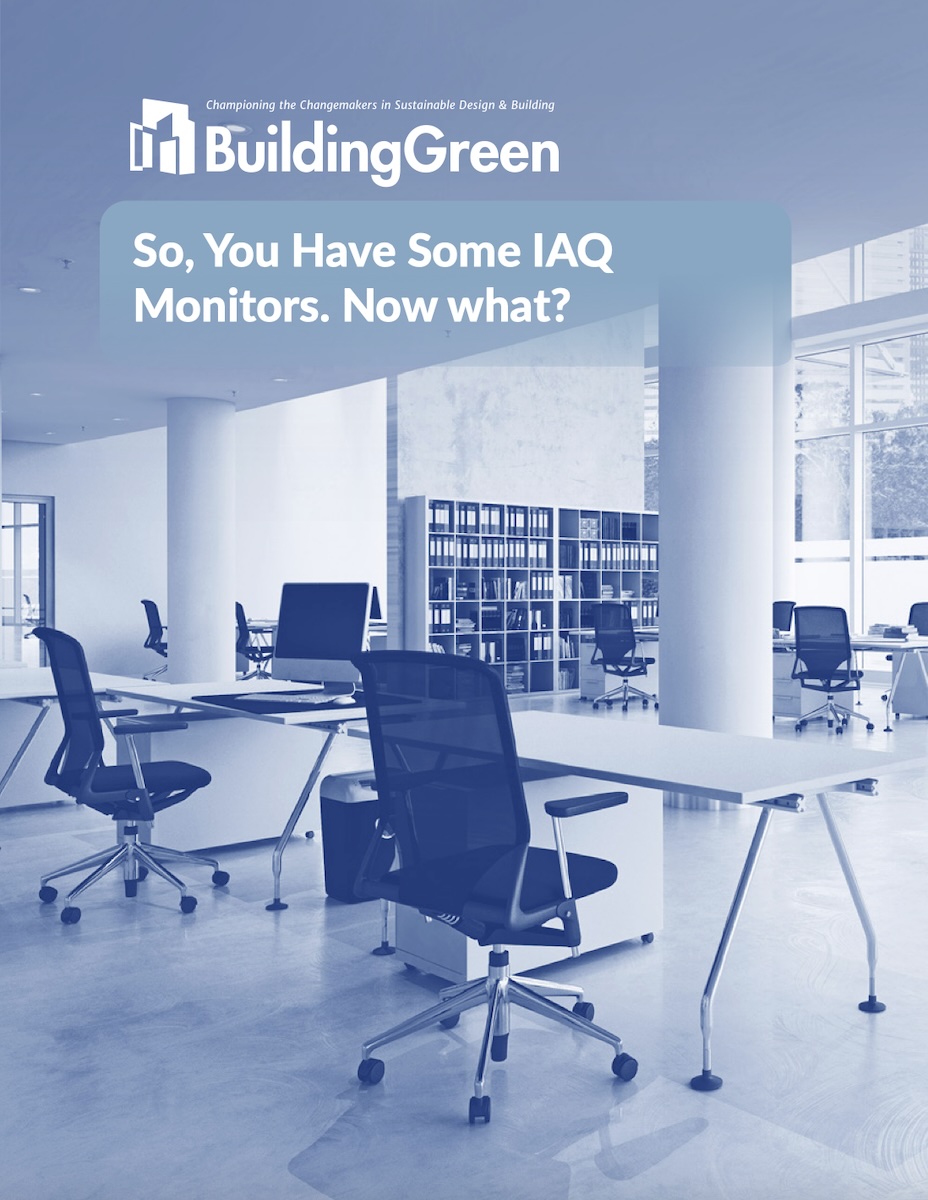 “So, You Have Some IAQ Monitors. Now What?” is a free white paper by the Air Quality Working Group, a subset of the BuildingGreen Peer Networks, that delves into how practitioners can interpret and use the data they get from continuous air monitors to achieve excellent indoor air. (Disclosure: the author of this piece copy edited the white paper.)