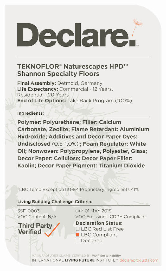 Currently, out of 800 Declare Labels, only 10­ to 15 are third-party verified. Having this verification will go a long way toward improving transparency data and improving the sustainability of our material supply chain.